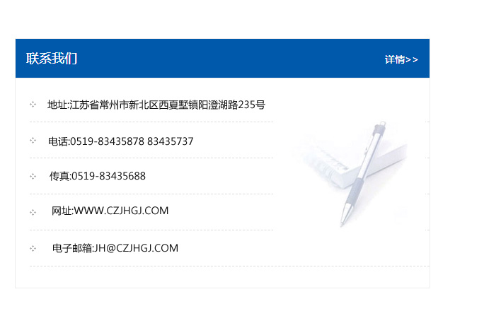 地址:常州市新北區友邦商務大廈1幢16、17層  電話:0519-85101652  傳真:0519-85112595  郵編:213022  網址:www.cz-jiayue_cn.ican-go.com  郵箱:xiajifengaa@163.com